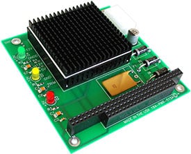 The design incorporates a 16-bit pass through PC/104 connector, molex type power input connector and voltage status LED’s. Since heat is always a factor to consider in any system design project, this module can be populated on either side of the board to facilitate heat sinking to one end of an enclosure, with the CPU heat sinking to the other end of the enclosure.