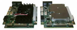 Heat spreaders have a large, flat surface on top. They have no fan and no fins. Instead of cooling by forced air, the spreader is pressed directly up against another large flat surface (for example: the frame of a vehicle or the inside wall of a sealed container) and heat is allowed to pass from the small heat spreader out to the larger metal surface. Heat spreaders do not cool the CPU by themselves, they only transfer the heat to another object where it can safely dissipate away from the processor. Heat spreaders are ideal for systems that expect to operate under extreme shock and vibration, or systems that need to be completely sealed inside a container to protect it from the environment.